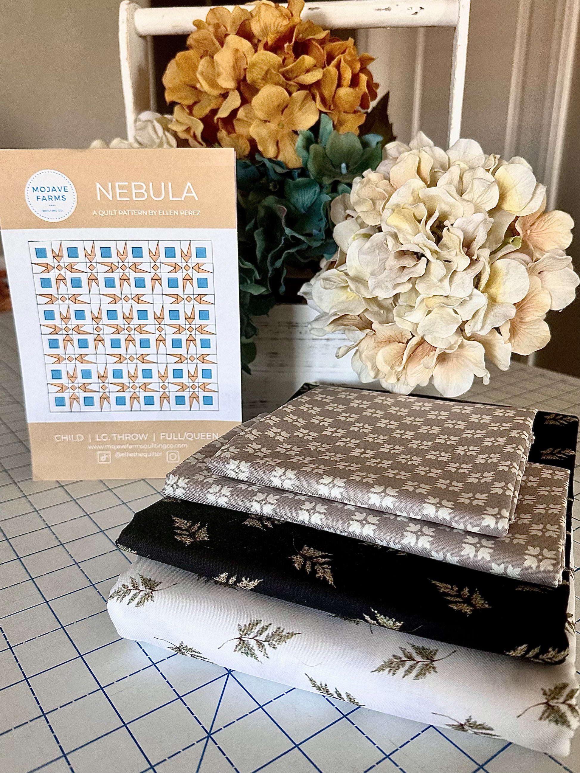 Kit Includes: Nebula Quilt Pattern, all fabric needed to assemble the quilt top, including binding. (Figo Fabrics) Backing and batting are not included in quilt kits.