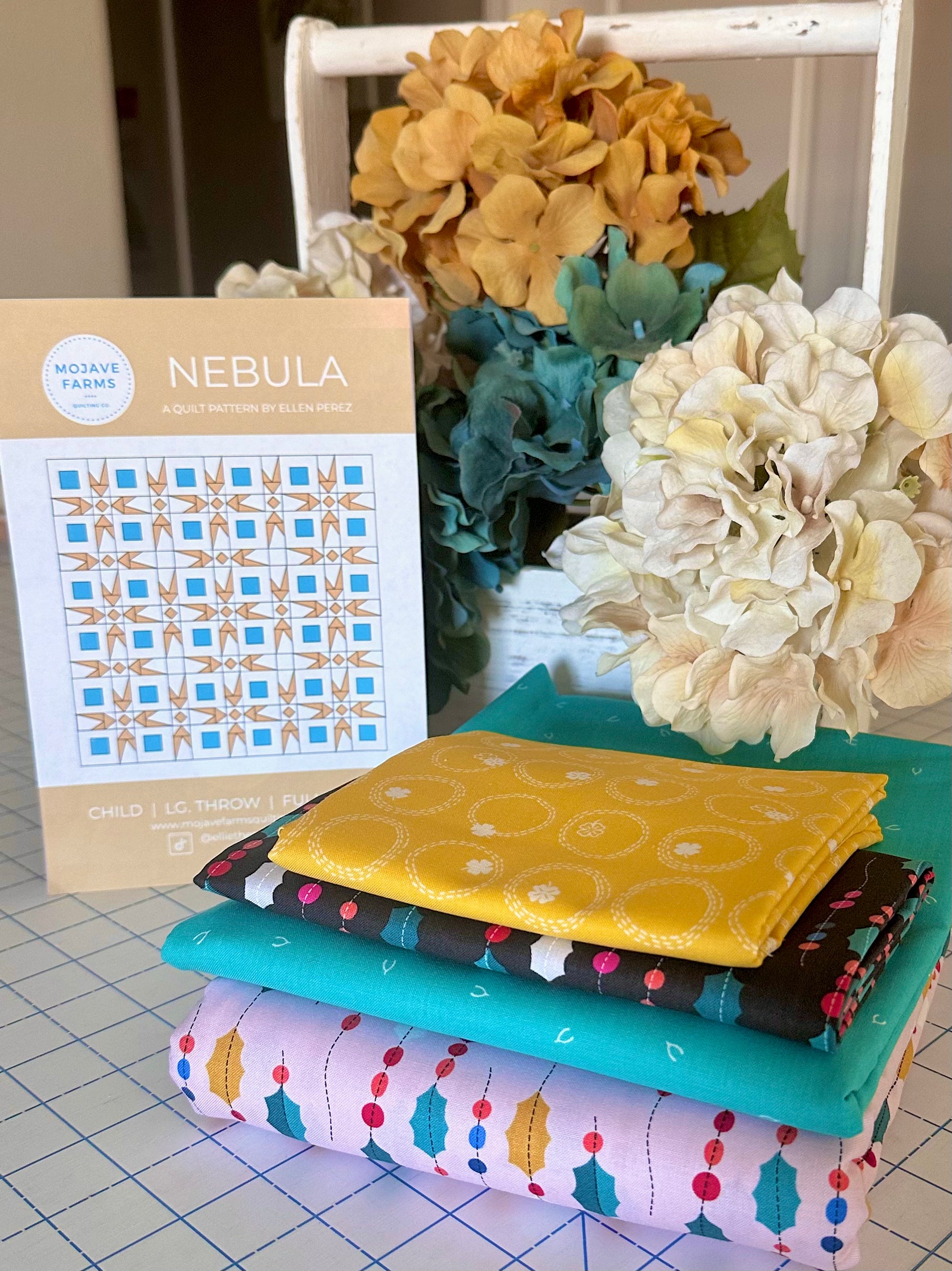 Kit Includes: Nebula Quilt Pattern, all fabric needed to assemble the quilt top, including binding. (Figo Fabrics) Backing and batting are not included in quilt kits.