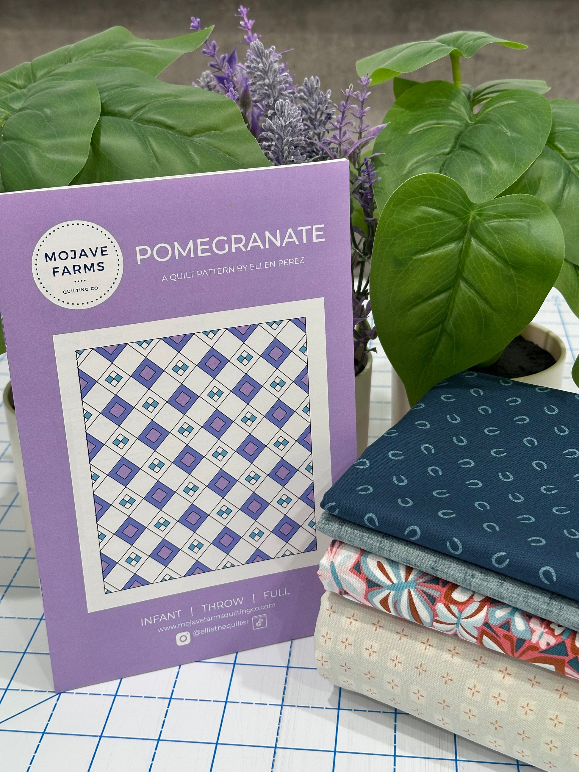 Kit Includes: Pomegranate Quilt Pattern, all fabric needed to assemble the quilt top, including binding. Backing and batting are not included in quilt kits.
