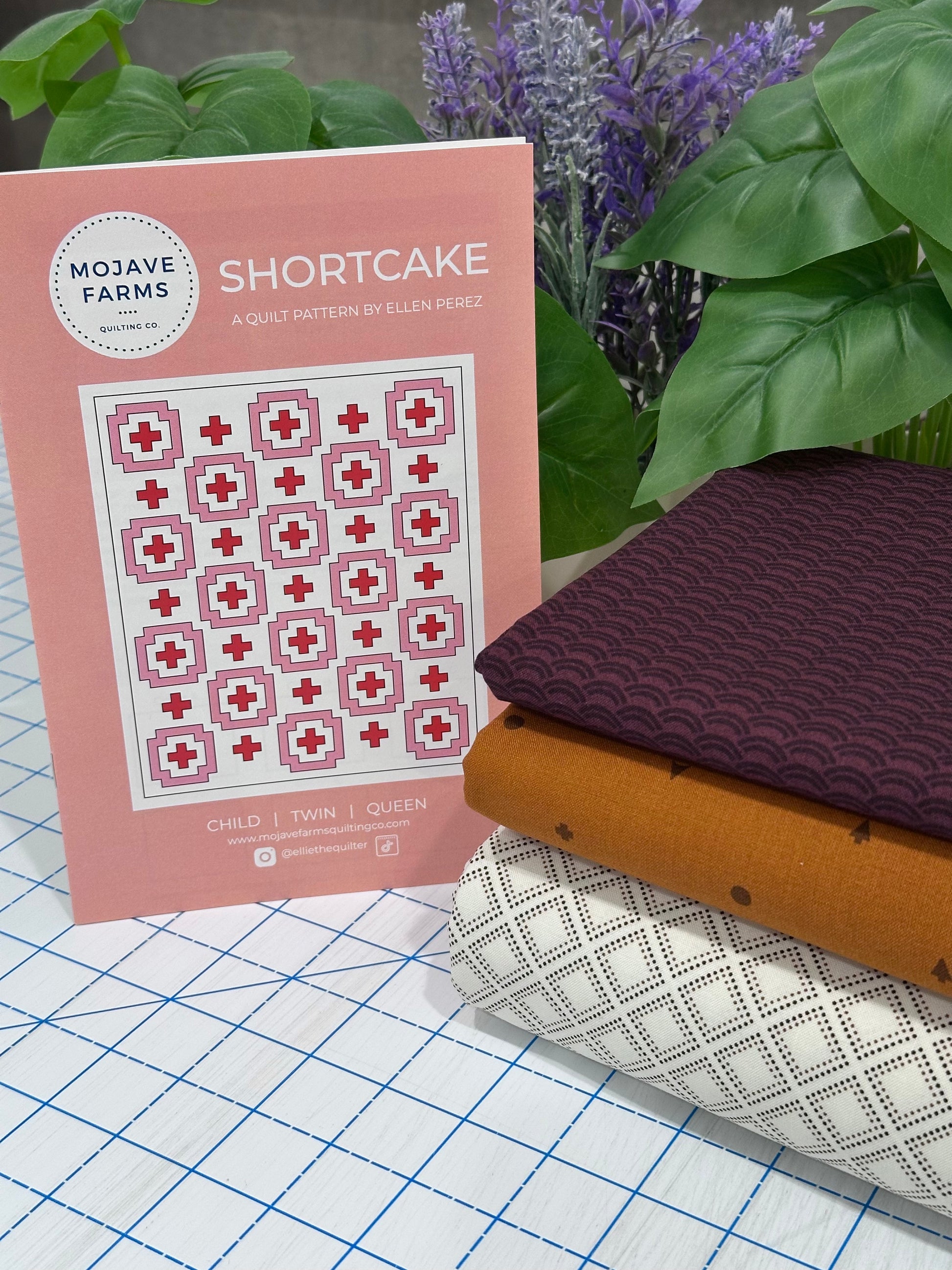 Kit Includes: Shortcake Quilt Pattern, all fabric needed to assemble the quilt top, including binding. Backing and batting are not included in quilt kits. (Kit does not include fabric for the optional border in the pattern.)