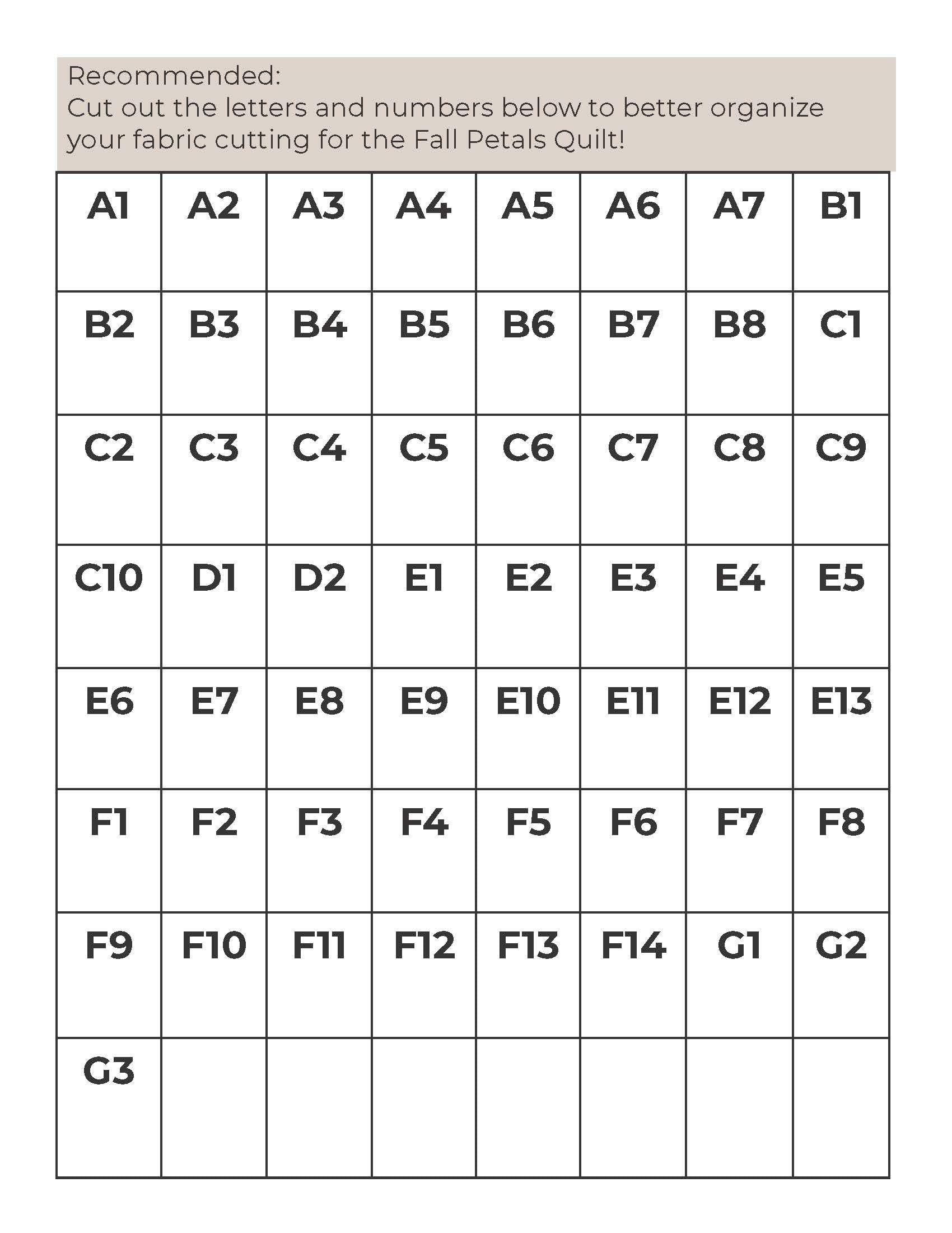 Did you decide to give our Fall Petals Quilt a go? Enjoy this free PDF download to help you keep your cut pieces and blocks organized!