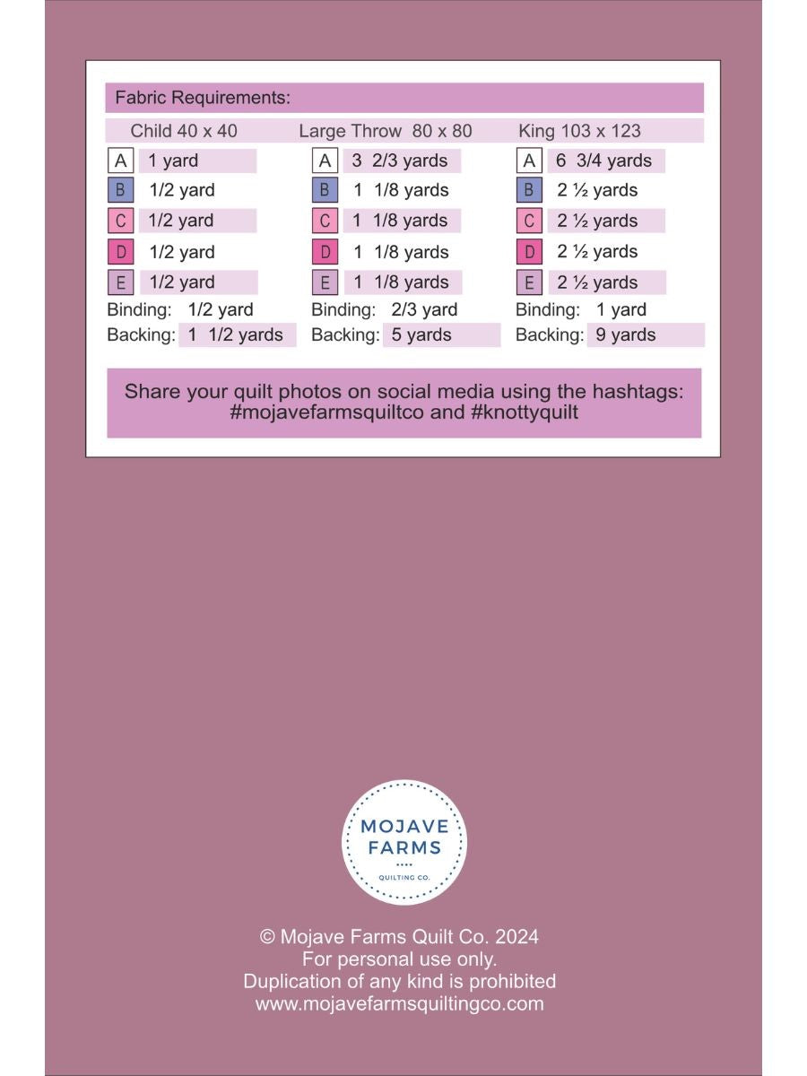 - You may sell quilts that you create using Mojave Farms Quilt Patterns, but please give design credit to Mojave Farms Quilt Company.