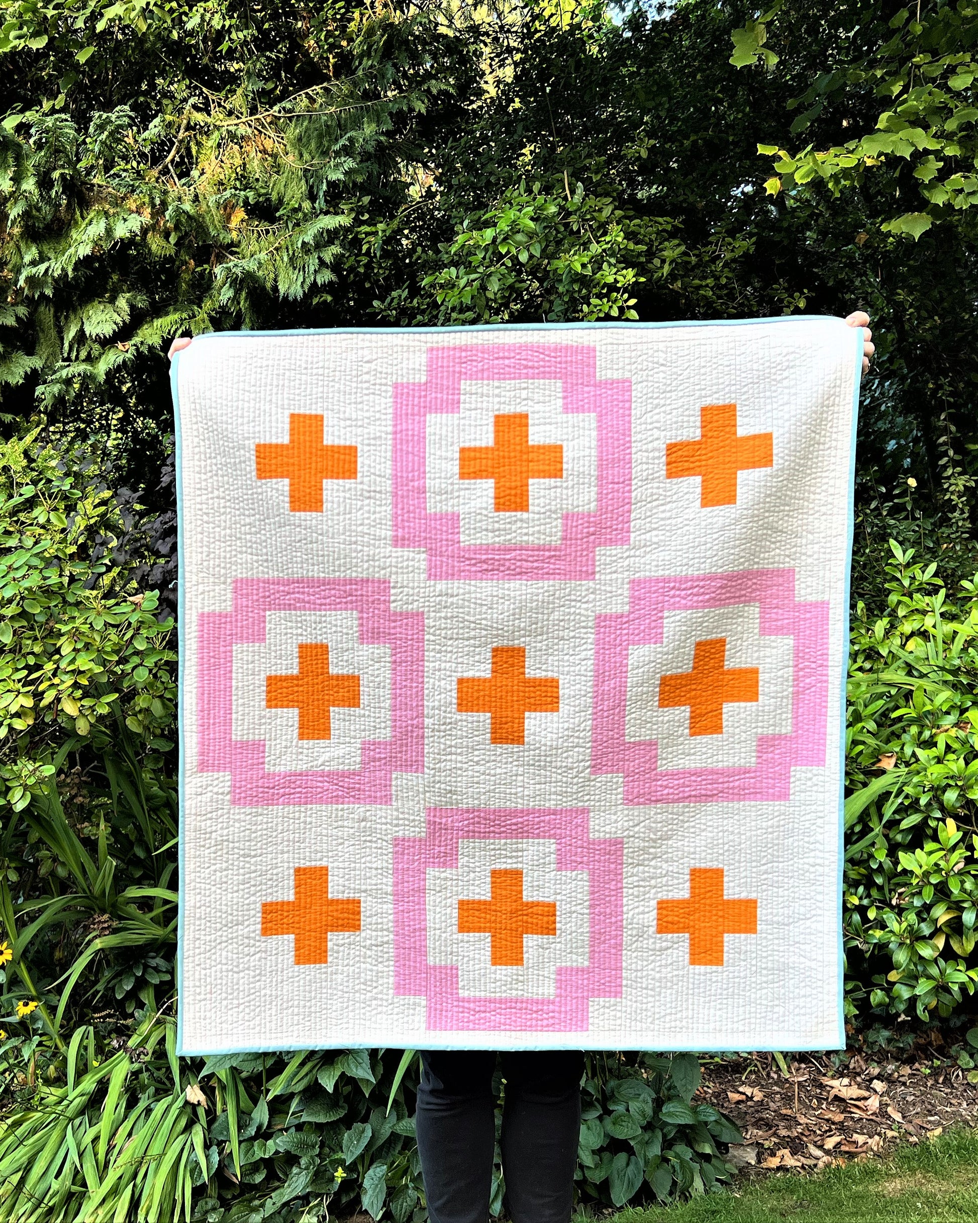 This quilt pattern by Ellen Perez comes with instructions for a Child (44” x 48”), Twin (76” x 98”), and Queen (96” x 118”).