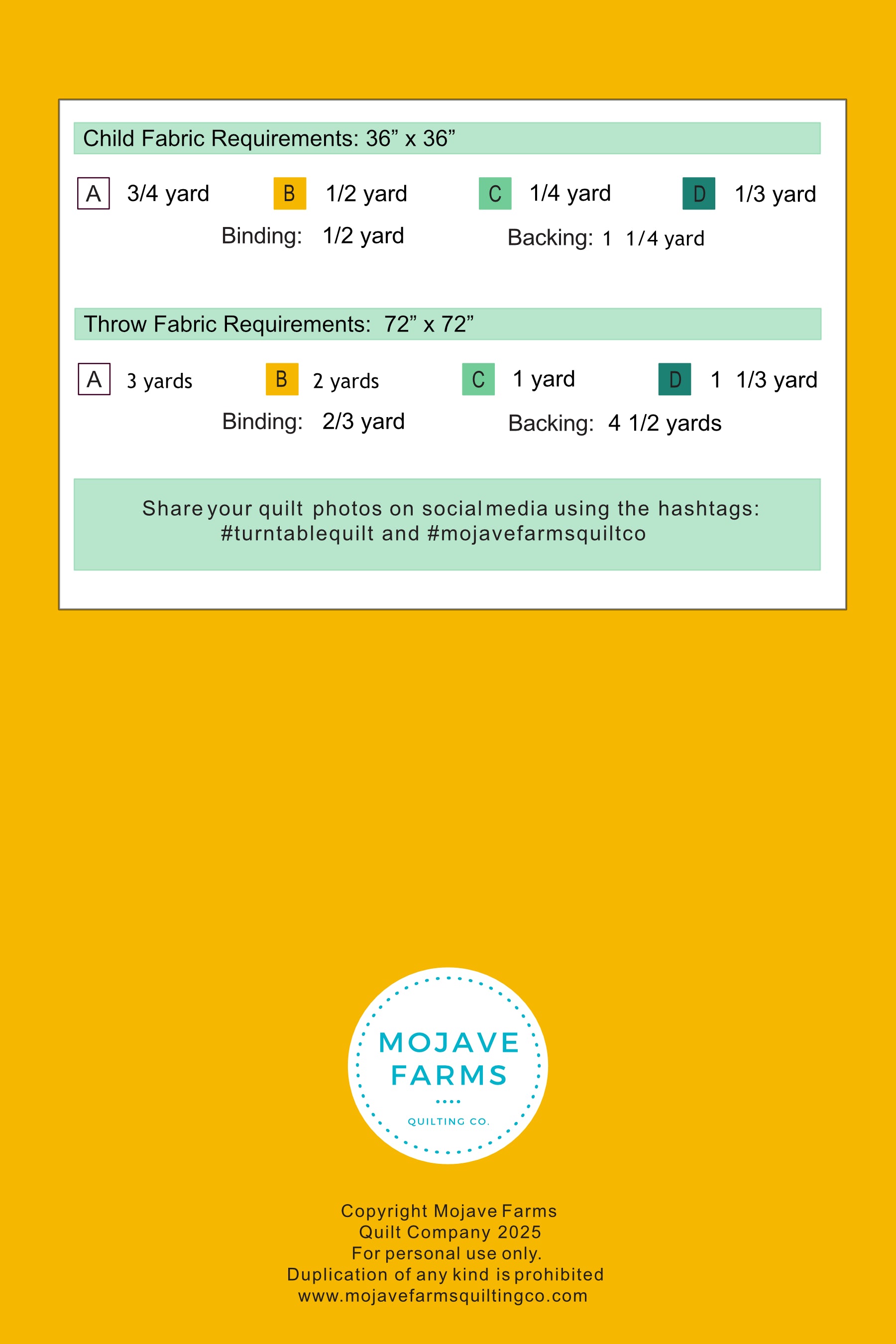 - You may sell quilts that you create using Mojave Farms Quilt Patterns, but please give design credit to Mojave Farms Quilt Company.